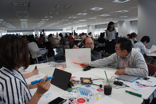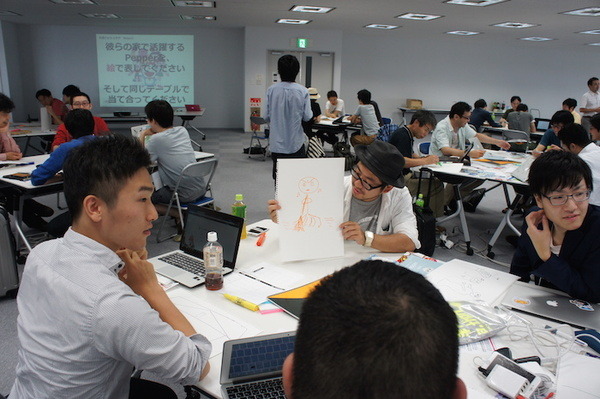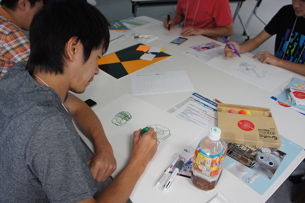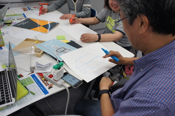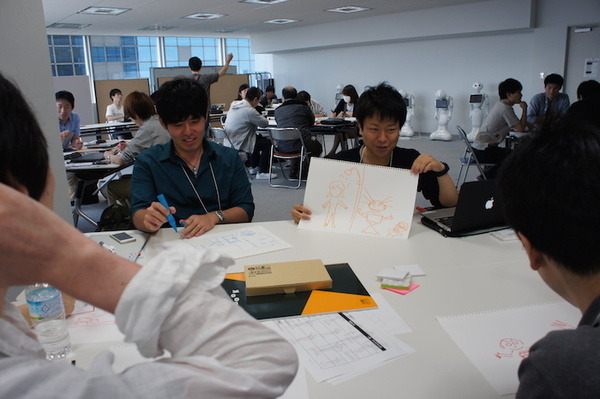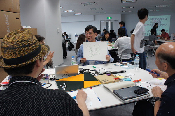 続いて、アイスブレイクです。とある、アニメの登場人物の家で活躍するPepperをみんなで絵に描いてみます。