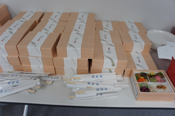 チームビルディングが完了しましたので、昼食の時間です。なだ万のお弁当、中華弁当、ハンバーガー&ポテトです。