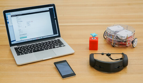 シードルインタラクションデザインは、Webブラウザやスマートフォンから制御可能なIoTモーター「Webmo」を発売中。このモーターと日立ハイテクノロジーズが開発したブレイン・マシン・インタフェース、携帯型脳活動計測装置「HOT-1000」と組み合わせることで、脳の信号からモーターを制御することができるスターターキットとして販売します。
