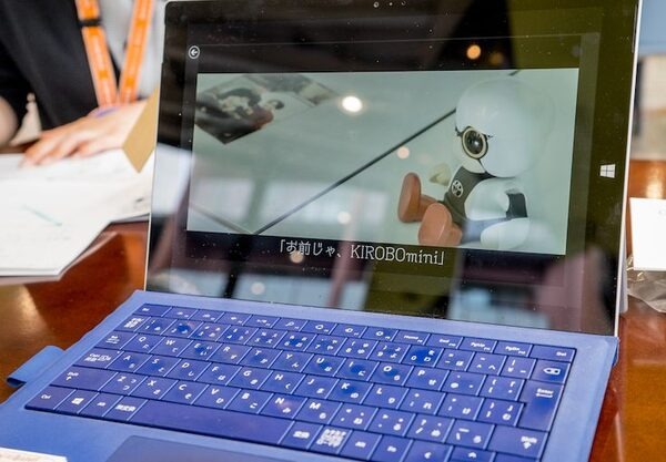 ショールームの受付にKIROBO miniの実物も展示中でした。
