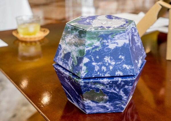 蓋をあけると、KIROBO miniとご対面となります。なおこの地球型のケースはディーラーのものなので、持ち帰りは違う箱に入れることになります。