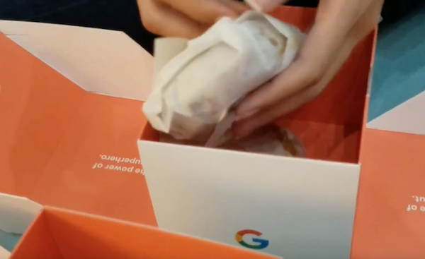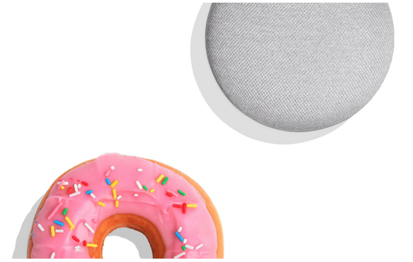 Google Home Miniの丸い形状、直径98mmというサイズをドーナツに見立てたプロモーションだ。