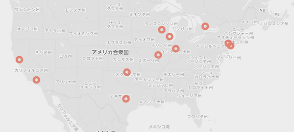 ロサンゼルス、サンフランシスコ、オースティン、オクラホマシティ、セントルイス、インディアナポリス、シカゴ、マディソン、トロント、ニューヨーク(マンハッタン)、ニューヨーク(ブルックリン)となっている。