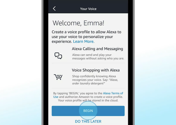 まず、ユーザーは10個のフレーズを読み上げることで、音声プロファイルを設定しておく。その後は、発話したユーザーが誰であるかを理解し、パーソナライズされた結果を応答していくようになるというものだ。発話ユーザーが識別できなかった場合は今まで通りのAlexaとしての応答を行う。
