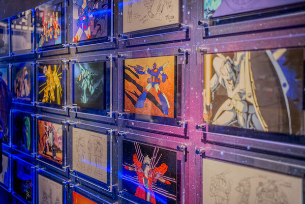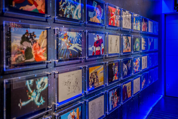 壁にはさまざまなロボットアニメのポスターが貼られています。