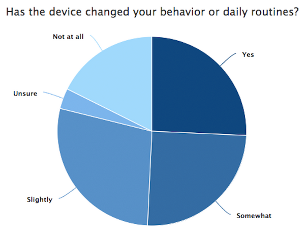 スマートスピーカーを使うことで、毎日の行動や日課が変わったかを聞いたところ、20%のユーザーのみが変わっていないと回答した。つまり80%はなんからの変化があったと回答したことになる。