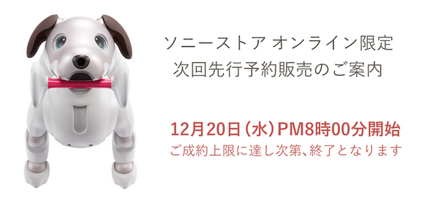 ソニーの「aibo」3度目の先行予約が12月20日開始、過去2回は即売切れでお伝えしているが、本日「12月20日(水)PM8時00分」に先行予約が再び開始される。