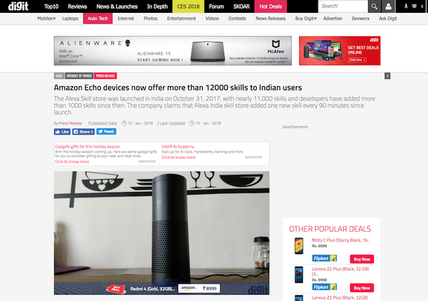 digit.inによれば、インドのAmazon Echo向けAlexaスキルの数が12,000を突破したという。