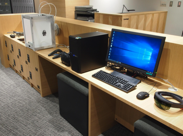 スーパーコンピューター、3D プリンター、ドローン、VR・AR 機器、Pepper、タブレット、各種 OA 機器などを常設し、最新テクノロジーに触れる機会を提供する