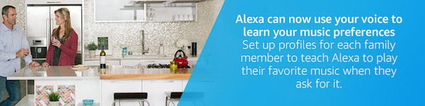 Alexaは声で人物を識別し、その人の好みの音楽を覚える機能がある。この機能を使うためにはAlexaアプリで家族の設定を事前にしておく必要がある。
