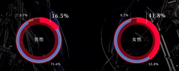 なんと1割の男性に対し女性は約4割の幸福感が見られる。