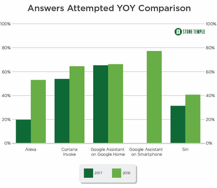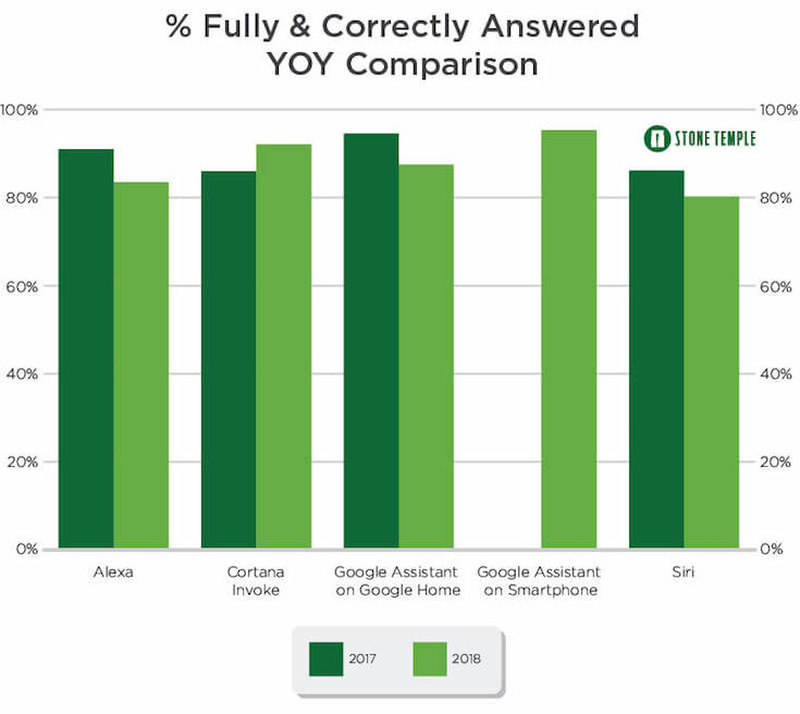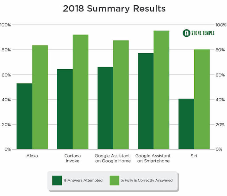 Stone TempleによるAI音声アシスタとの賢さをテストした結果が公開された。