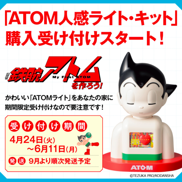 これにより予約をした方には、確実に「ATOM 人感ライト・キット」が手元に届くことになる。発送は9月以降で、6月11日までの期間限定予約受付となっている。