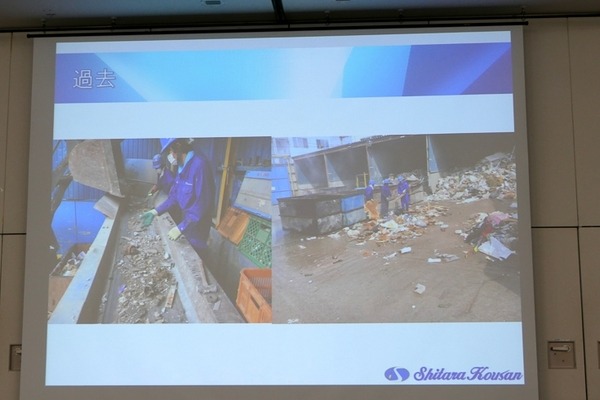 設楽氏自身は、2014年にロボットをたまたま動画サイトで発見したという。すぐにフィンランドのヘルシンキに飛び、実際に動いている工場を現地で見学して、導入を決めた。設楽氏は、「導入の経緯についてはよく聞かれるが、経緯も何もない」と述べ、現場の写真を示し、「本当ならここに25名の人が立ち、毎日分別作業を繰り返していた。機械は新しくても、やってることは古いというスタイルを変えたいとずっと思っていた」と続けた。