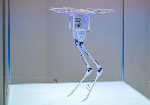 ドローンの下に2本足を装着し、ロボットを重力から開放するというプロトタイプ。