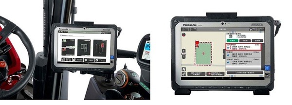 操作・設定には防塵・防水性に優れた10.1インチのタブレットを採用。タブレット内の情報はアイコンやイラストで表示し、作業領域や経路作成、運転中の軌跡確認など、簡単な操作が可能だ。また、2台のトラクターでの協調作業時には、随伴(あるいは併走)する有人トラクター内にて近距離監視を行いながらタブレットにより無人トラクターを操作する。