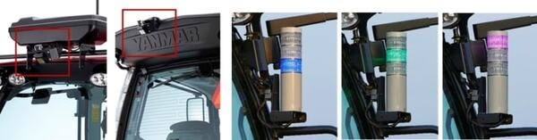 無人での運転・作業を行うロボットトラクターでは、レーザーや超音波で物体との距離を計測するセンサーや、全方向から自動走行の状態を確認できる3色のセーフティランプを設置し、周囲の安全を確保。自動運転中にエンジンが停止すると自動でブレーキがかかるセーフティブレーキも備えている。