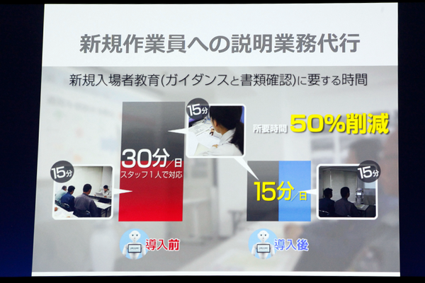 従来はスタッフ一人で担当し、毎日30分かかっていたところ、Pepperを導入以降は15分に短縮することができたと言う。