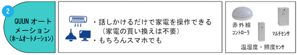 QUUN(キューン)は、九州電力が独自に構築した音声AIエンジンを採用している。人気声優の声でニュースや天気を提供するボイスサービスのほか、話しかけるだけで家電を操作したり、自宅を守ってくれる機能など、生活を豊かに便利にするサービスを提供するIoTサービスがパッケージとなっている。なお、一部サービスを除き、九州に限らず日本全国で使うことができる。