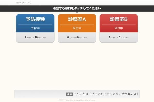 2018年8月6日、日本サード・パーティ株式会社(JTP)は医院向けの受付ロボット「ロボでもマテル」の販売を開始することを発表した。受付にあるロボットの画面で希望のメニューを選ぶと、プリンタから受付票が出力され、利用者は待合室でなくても、好きな場所で待つことができるというものだ。