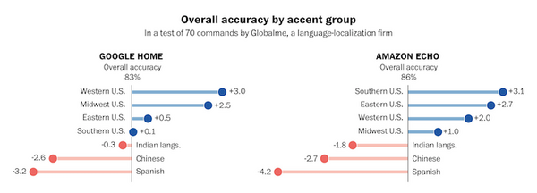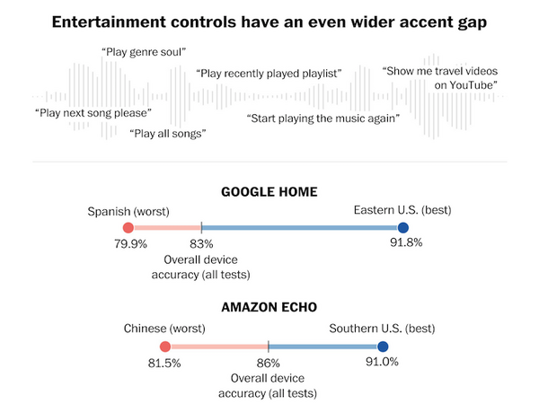 米・ワシントンポストが、スマートスピーカーを訛り(なまり)がある人が使うとどうなるかをテストし、その結果を公開した。