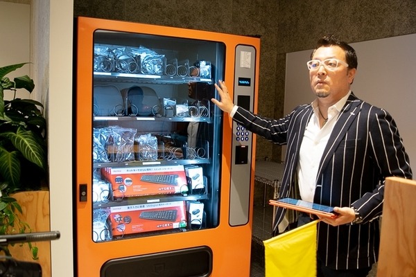 自販機で社員証をピッとすると、PCやスマホの周辺機器をレンタルすることができます。海外から来た際に、コンセントの型が違うなどの問題があっても、簡単にレンタルできるのはありがたいですね。