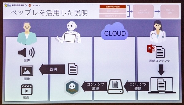 その解決策として提示したのが「ICアシスト for Pepper」だ。ICはインフォームドコンセントの略。医師らから患者が診療内容について説明を受け、十分に理解した上で、自身が同意しながら治療方法を選択していくことを意味する。