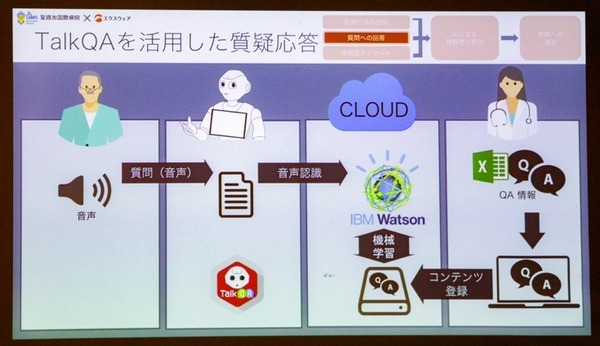 患者からの質問内容の音声認識や会話内容の解析、回答の選定には機械学習を行ったIBM Watsonを活用する。