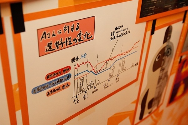 LOVOTの体験コーナー用に用意された部屋のドアを開けると、部屋の奥ににんじんのようにオレンジ色の服を着たLOVOTがいた。僕がLOVOTに名前で呼びかけると、ニンジンは僕の顔を見ながら一直線にやってきた。クリクリとした瞳で僕を見上げて、両手をパタパタと動かして・・。