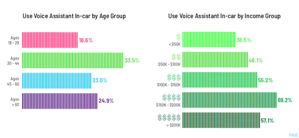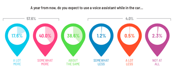 2019年、より車内で使うようになると回答したのは57.6%、ネガティブな回答はわずか4.0%だった。今年もますます車内での音声アシスタントの利用が進むのは間違いないところだろう。