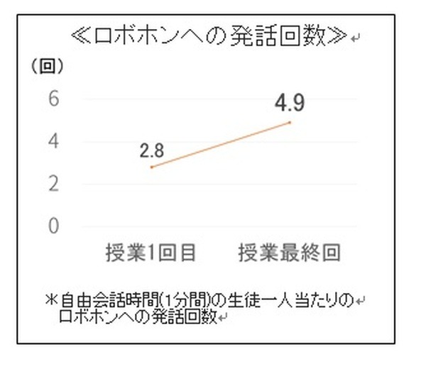 両社は、英語学習におけるコミュニケーションロボットの有用性を検証するため、2018年5月から8月までの3カ月間、首都圏のアルクの英会話教室2校にて、ロボホンを活用した実証実験を行った結果、教室に通う生徒に発音や声のトーン、スピードに配慮しながら英語を丁寧に話して伝えようとする意識が芽生え、初回と3カ月後の授業を比べると発話回数が約75%増加したこと確認したと言う。
