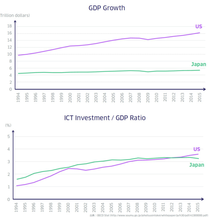 岡田氏は「アメリカのGDPが伸びている中、日本は残念ながら停滞している。ではICTに投資していないのかと言えばそうではなく、AIに効果的な投資をしていない点が停滞に繋がっているのではないか」と分析した。