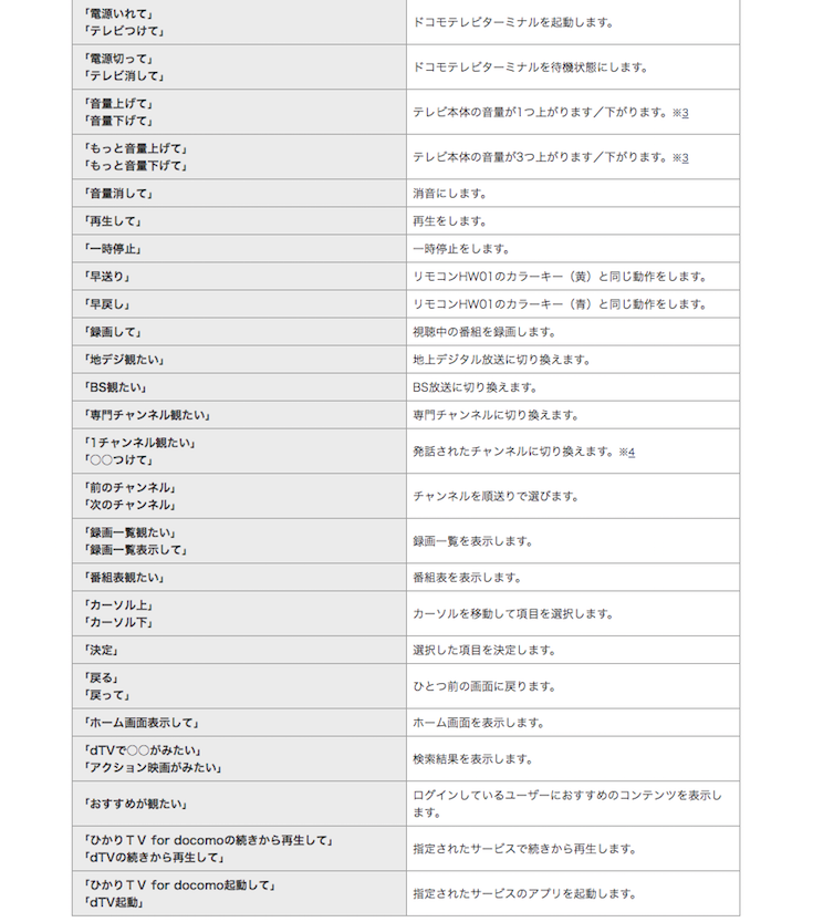 ドコモテレビターミナルから my daiz で行える操作一覧