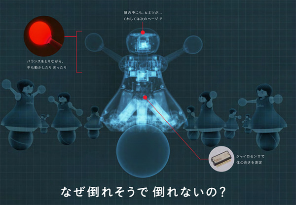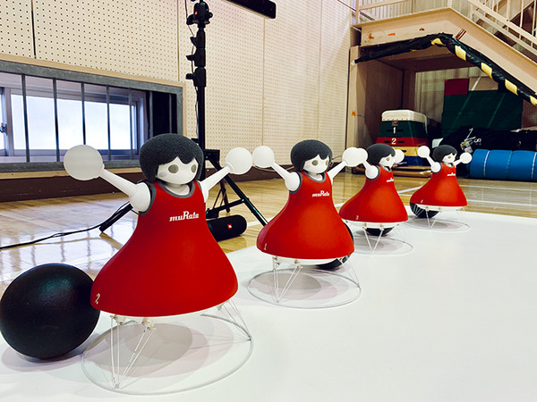 もしかすると一見してパフォーマンスを見ただけでは気づかないかもしれないが、チアロボットたちは黒い球に乗っている。すなわち、玉乗りをしている状態だ。