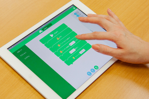 自作したロボットは専用アプリを使ってタブレットやスマートフォンからプログラミングすることができる。子ども達は自分の想像力を活かして、ロボットを自分なりに動かしたり、LEDライトを光らせたり、ブザーで音階を奏でたり、楽しみながらプログラミングを学んでいく教材に仕上がっている。