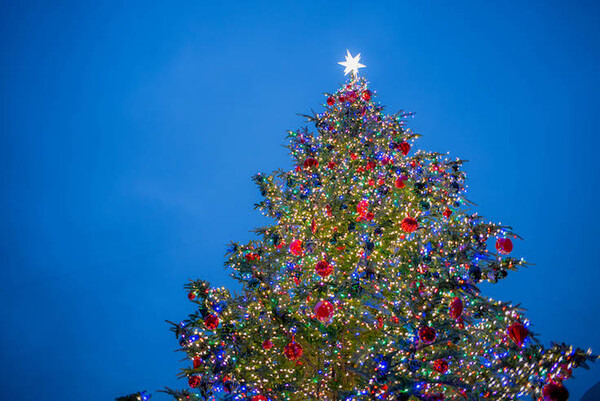 ホテル入口を入るとすぐに巨大なクリスマスツリーが目に入ります。これは12月6日~12月25日の期間限定のお出迎えとのこと。