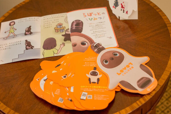 机の手前に置かれているLOVOTの形の冊子が製品版マニュアルとのこと。初めて拝見しましたが、かわいらしく、そしてわかりやすいものでした。他にも部屋の中にはLOVOTの小冊子や新聞なども置かれており、LOVOTの知りたいことがわかるようになっています。