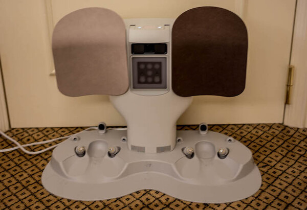 充電ステーションであるネストと呼ぶ装置。かなりこった構造です。LOVOTが2台並ぶぴったりサイズです。