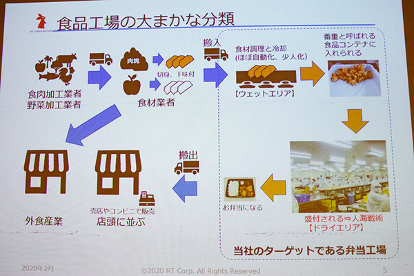 更に具体的に言えば、アールティは弁当や総菜を箱詰めするような生産工場内で活躍するロボットだ。