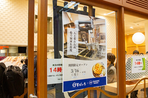 実証実験の期間は3月16日から4月15日まで。ひと月間、駅そばロボットが稼働し、安定した品質のお蕎麦をお客様に提供し続けることを目標に行われる。