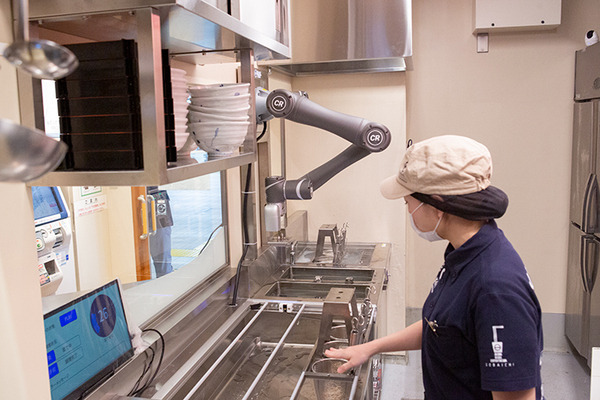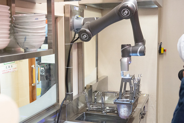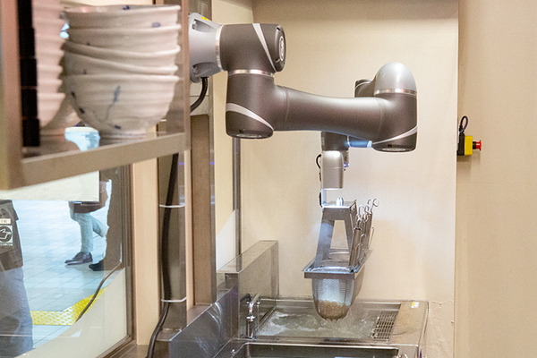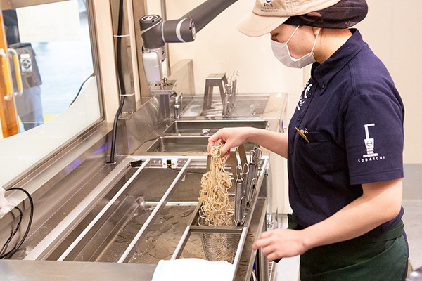「ひとつは人件費の削減。しかし、それ以前に最近の外食産業はスタッフを募集しても人員を確保すること自体が大変な状況になっている。自動化を推進しないと、今後も安定して駅そばを運営していくのが困難になることが予想されている」という。もうひとつは味の安定性。「茹でる、洗う、締めるという作業は単純だが、時間の正確性が求められ、お蕎麦の味を決める重要な工程。調理ロボットは決められた時間通りに作業するので、バラツキかない安定した味のお蕎麦を提供できると考えている」と語った。