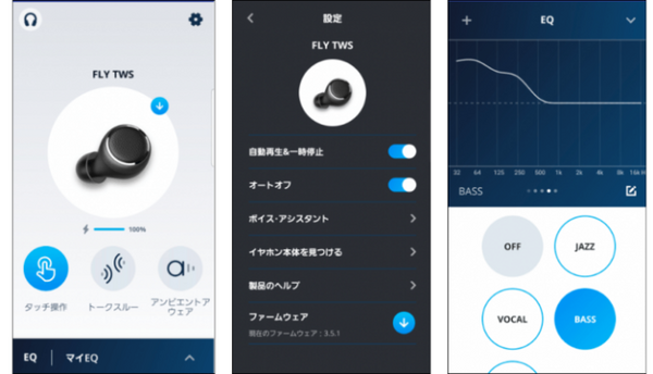 各種機能は対応アプリ「My harman/kardon Headphones」で設定できる。アプリからは、イヤホン本体を取り外した状態で30分動作がない場合には自動的に電源がオフになる機能や、自動再生&一時停止機能のオンオフも設定可能。