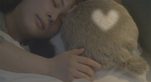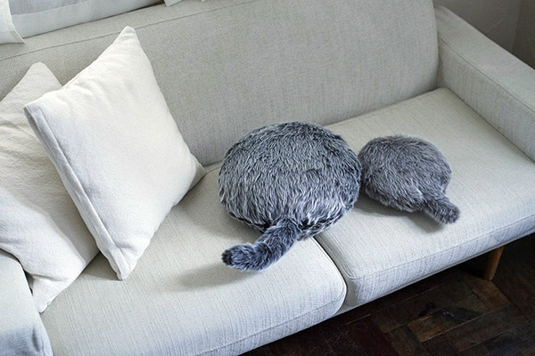 「Petit Qoobo」は、しっぽのついたクッション型セラピーロボット「Qoobo」の「子ども」のようなサイズ感。短いしっぽがとても可愛い。Qooboのように撫でるとしっぽを振って応えてくれるだけでなく、新たに、周囲の音や声に反応してしっぽを振ったり、大きな音に驚いたり、抱き寄せるとトクトクと鼓動を感じるなど、「生き物感」という意味では、Qooboより進化していると言えるだろう。