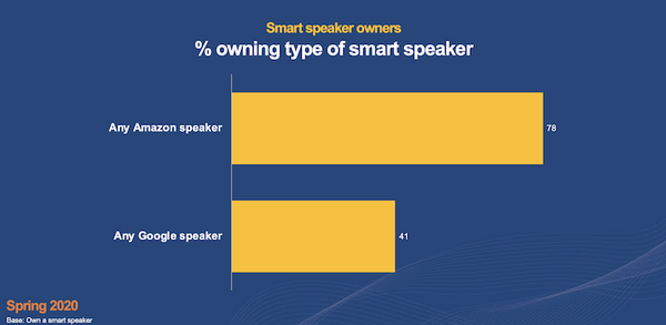 Amazon Alexa搭載が78%、Google Assistant搭載が41%。米国では先行していたAmazon Echoが強い状況が続いている。