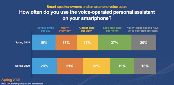 2019年に比べて2020年ではスマートフォンでの音声アシスタント利用も増えている結果となった。