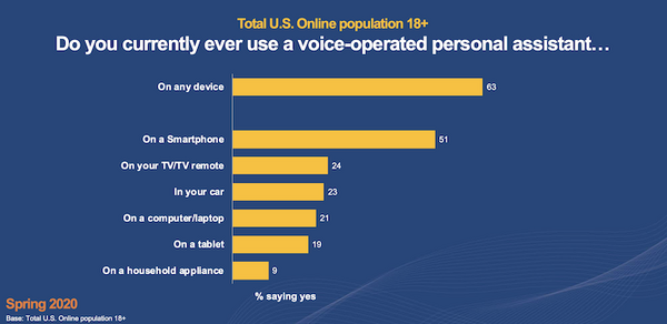 63%がなんらかの音声操作のアシスタントを利用していると回答した。