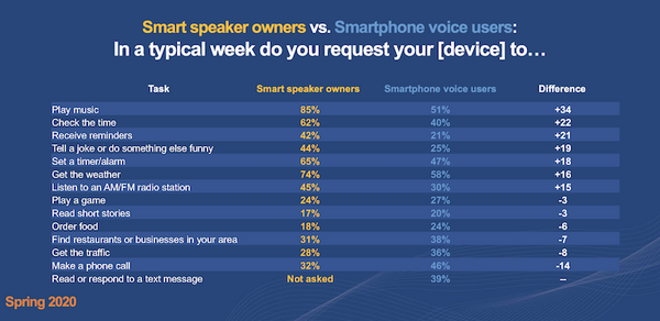 スマートスピーカー所有者 vs. スマートフォンの音声ユーザーのリクエストの違い