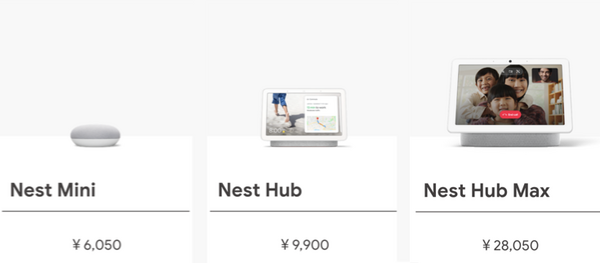 今回のラインナップ整理により、現在のラインナップはNest MiniNest HubNest Hub Maxの3機種となった。価格はそれぞれ6,050円、9,900円、28.050円となる。選び方は簡単。画面が不要ならNest Mini、ビデオ通話したいならNest Hub Max、ビデオ通話はしないが画面が欲しいならNest Hub。