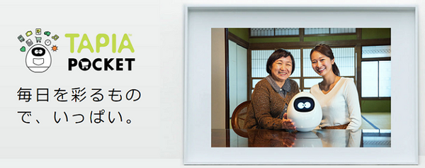 | 主な機能 | 会話、ビデオ通話、みまもり(みまもりカメラ&タピアとユーザーの交流履歴の確認)、お知らせ配信、本の朗読など |