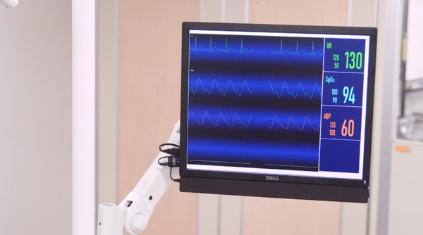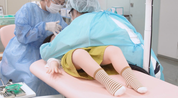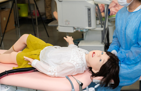 小児患者特有のジタバタと暴れる動作や、病状の急変をリアルに体感できる小児患者型ロボット「Pedia_Roid」(ペディアロイド)を導入することで、児治療の教育の現場で、よりリアルに実践練習を積むことができる。